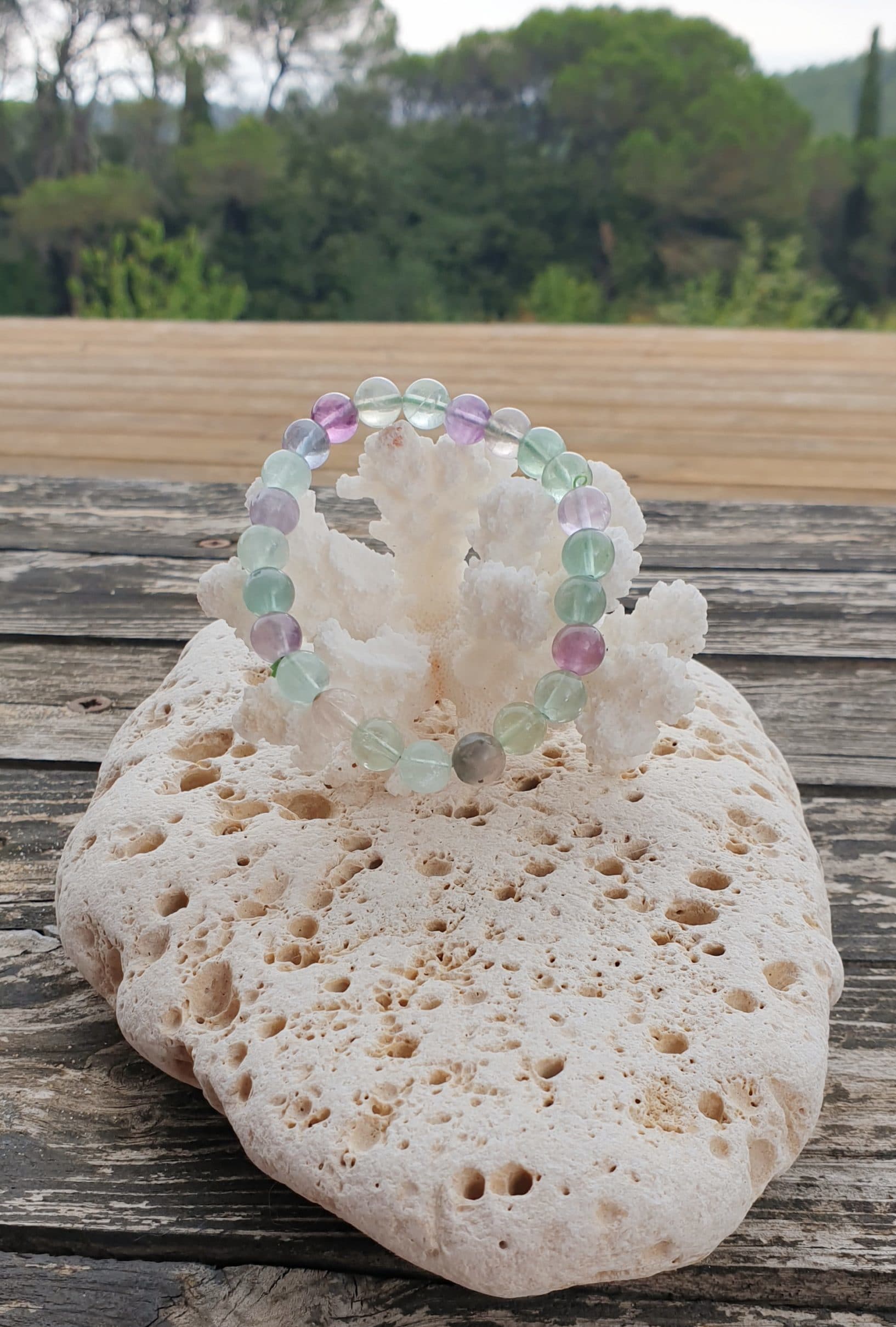 Bracelet boule 8mm Fluorite ou Fluorite AB